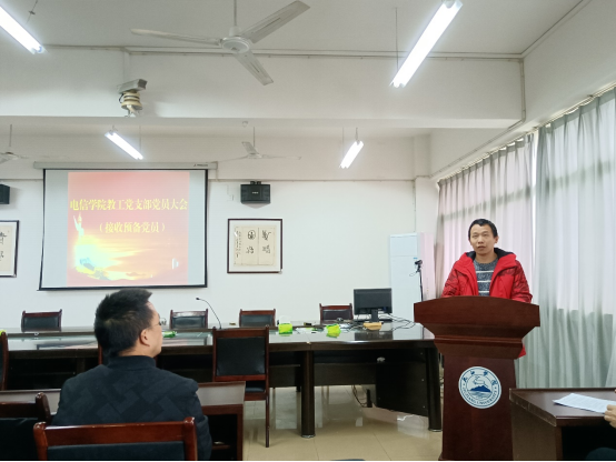 最后,学院党支部书记汪傧同志做总结讲话,他首先对两位同志表示祝贺和欢迎,并提出希望两位同志要以此为契机,结合正在开展的“不忘初心、牢记使命”主题教育,切实加强政治理论学习,不断提升业务能力水平,成为一名优秀的共产党员。