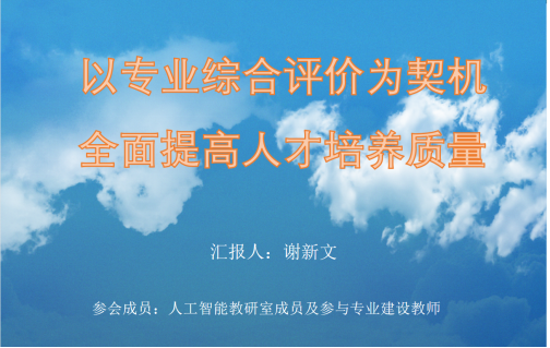 教研室主任谢新文老师从专业综合评价角度阐述如何全面提高人才培养质量。谢主任详细解读了专业综合评价指标体系,分析Williamhill威廉希尔专业综合评价结果,提出要将人工智能专业建设好必须从氛围建设、团队建设、专业建设、课程建设及学科建设方面不断努力。