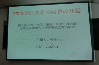 3月3日下午,我院2023年江西省省级教改立项课题开题报告会在竞知楼908教室举行。学院胡日新副院长,罗东云,蔡苗苗等老师、项目负责人曾伟老师和项目负责人刘泽良老师进行了开题汇报。