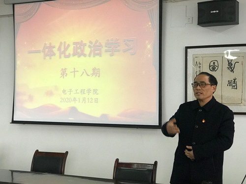 1月14日下午,电子工程学院开展“一体化”政治学习第十八期活动,本次活动由党委书记孙小明主持,全院教职工参加了此次活动。