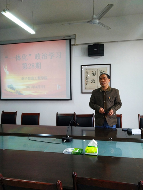 “一体化”政治学习模式,是电子工程学院党委结合工作实际,于2017年年底尝试创新的政治学习组织形式,——将党委理论学习中心组学习会部分重点发言与教工政治学习及党支部“两学一做”微党课一并进行。既避免了一部分学习内容的简单重复,又为党委理论学习中心组转化学习成果提供了一条渠道,有利于党委理论学习中心组不断提高学习质量,有利于提高教工政治学习质量及党支部党课教育质量。