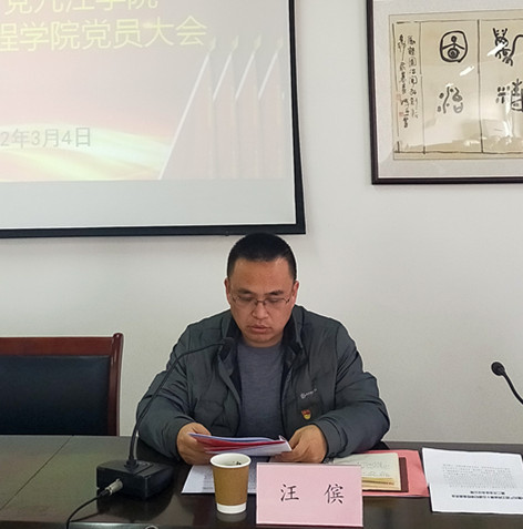 会上,党委书记汪傧代表上届党委作了工作报告。他向党员同志们报告了5年来的主要工作以及今后的努力方向。
