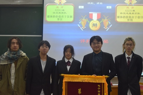 参加“新生杯”辩论赛的七支队伍采取淘汰制,经过前期的激烈角逐,A2261班代表队与A2231班代表队脱颖而出,闯入本次决赛。本场比赛由A2261班代表队担任正方,论证媒体的价值在于发掘事实,A2231班代表队担任反方,论证媒体的价值在于倡导价值。赛场气氛至始至终都异常活跃,每个比赛阶段参赛选手大胆辩论,语言流畅且极具个性化,引经据典,妙语横飞,让观众感受到了一场别具特色的辩论盛宴,并给予热烈的掌声。在一番激烈的答辩后,A2231班代表队凭借四位选手敏捷的思维和雄辩的口才获得此次辩论赛冠军。在活动的最后,由盛健老师对选手进行点评,并为最佳辩手以及胜出队伍颁奖。