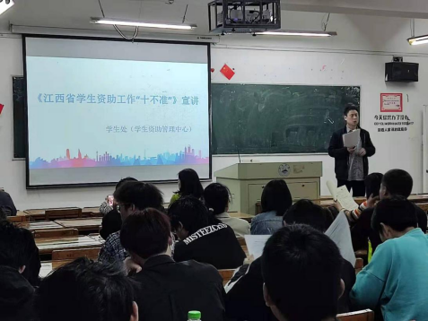 培训中,朱亚军科长带领大家逐条学习了《江西省学生资助工作“十不准”》,要求各班主任在班级专题宣讲,传达到每位学生。同时强调在以后的资助工作中,为确保资助政策落到实处,坚持班主任亲自主持,决不能甩手丢给班干去做;坚持公平公正公开,确保每个家庭经济贫困学生获得资助;坚持反馈渠道畅通,确保学生诉求得到及时处理。