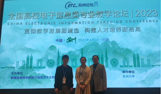 第六届全国高校电子信息类教育教学论坛于2023年4月14日至16日在苏州市华美达国际大酒店隆重举行。我院电子信息工程教研室曹晖老师、教研科科长彭弘靖老师和电子基础教研室谢新文老师参加了论坛。本次会议由教育部高等学校电子信息类专业教学指导委员会主办,苏州大学和清华大学出版社承办。北京大学王志军教授、清华大学张旭东教授、浙江大学史治国教授、电子科技大学杨建宇教授南京航空航天大学周建江教授和苏州大学李孝峰副校长分别做了大会主旨报告;二十位来自国内知名大学的教授、专家分别做了专题报告。