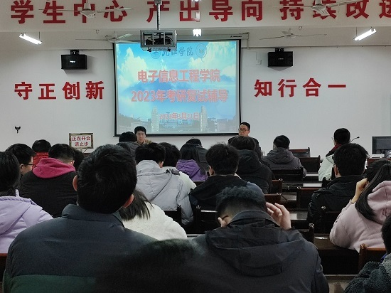 为进一步服务考研学生,开展针对性指导,帮助复试学生更加全面了解考研复试相关注意事项,掌握更多复试技巧,3月21日下午,我院在竞知楼904A会议室召开考研复试指导座谈交流会,副院长杨长春出席了会议,电信教研室主任高玉宝博士、人工智能教研室主任舒彤博士、自动化教研室主任罗东云博士、学生科科长朱亚军等老师及考研学子参加了会议。