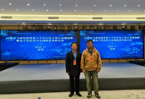 为了提高我院师生对大学生电子设计竞赛题目的分析和解答能力,增强与专家之间的沟通交流,提升竞赛的技术水平,我院杨世永教授和何俊副教授于2024年11月22日至24日参加了在深圳举办的“AI技术飞速发展背景下大学生电子设计竞赛创新暨电子信息类专业课程改革研讨会”。