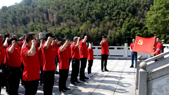 来到岷山革命烈士纪念碑前,全体党员肃立默哀,党员教师在副书记张堑带领下庄严宣誓,重温入党誓词。