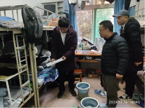 12月15日学院党委书记汪傧带队到各教室检查了晚点名消防安全主题教育开展情况。12月16日来到学生宿舍,对宿舍安全隐患排查工作,进行了抽查,确保各项隐患排查、整改工作进行到位。
