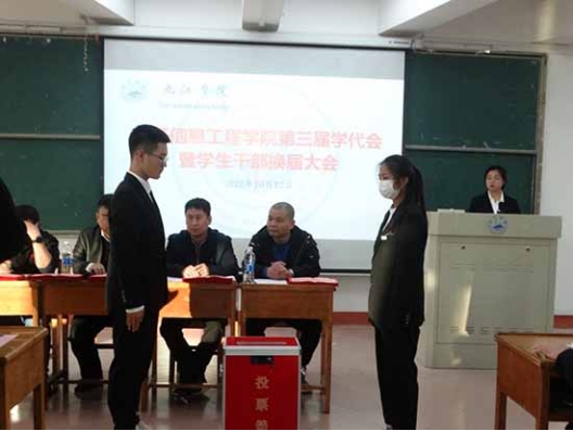 10月12日下午,williamhill中国第三届学生代表大会在竞知楼阶七教室胜利召开,学院党委书记汪傧、学生口老师以及来自全院各班级的51名学生代表参加大会。