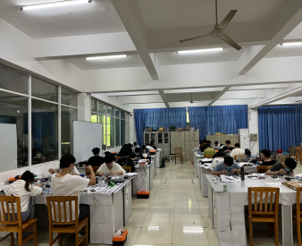 2022年5月21日上午8点整,江西省大学生电子专题设计赛Williamhill威廉希尔赛场内,30名同学正热火朝天的进行着电路的设计和焊接比赛。