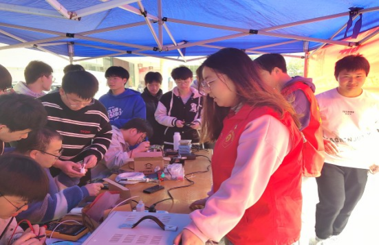 为大力弘扬雷锋精神,深入开展学雷锋活动。我院学生党支部、青年志愿者服务队联合电子协会于3月1日下午在三食堂广场开展义务维修活动,为全校师生提供便捷的维修,同时对同学们宣传用电安全。