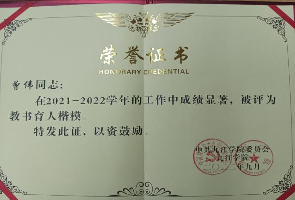 个人简介:曾伟,南京航空航天大学博士,williamhill中国自动化教研室副主任。在教学中以学生为中心,培养高素质具有国际化视野的应用型人才为己任,积极推进人才培养模式多元化教学改革;先后担任自动化电A1732班和电A2131班的班主任。荣获江西省防疫期间线上教学优质课三等奖,Williamhill威廉希尔优秀教师、Williamhill威廉希尔新华优秀教师、入选九江市双百双千人才工程项目。指导学生获得江西省建行杯第七届、八届国际“互联网+”大学生创新创业大赛铜奖1项、银奖1项,Williamhill威廉希尔“互联网+”大学生创新创业大赛金奖2项、铜奖2项、指导学生获得国家级大学生创新创业项目4项,校级大学生创新创业项目1项、2022年评为Williamhill威廉希尔优秀毕业论文指导教师。