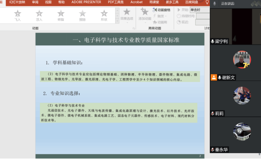 2022年3月23日,电科教研室召开了2022级电子科学与技术专业培养方案修订线上研讨会,会议由专业负责人谢新文老师主持,电科教研室全体教师参加了会议。
