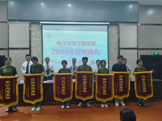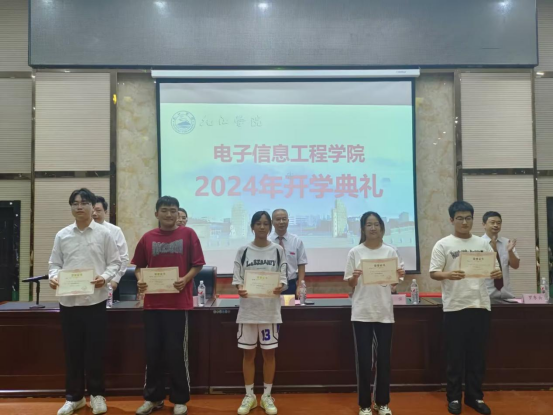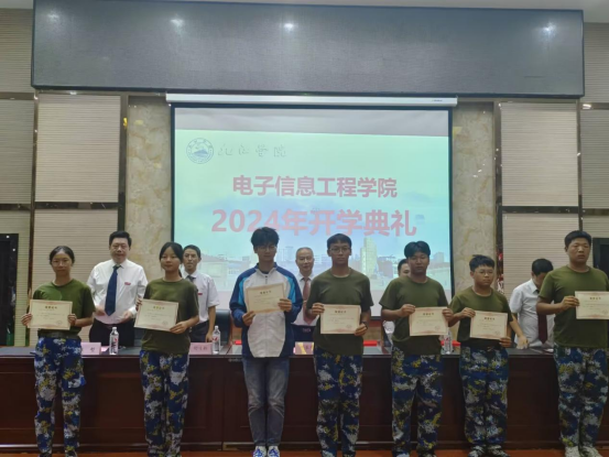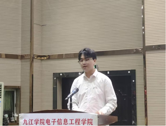 校友代表黎星华博士,我院2016届优秀毕业生,虽然家庭经济困难,但通过坚持不懈的努力,今年6月份从北京邮电大学博士毕业,并顺利入职中国电子科技南湖研究院。他向新生分享了自己学习成长的经历,并寄语学弟学妹三点期望,一是树立长远目标和阶段性目标,二是多参与比赛和活动,扩宽圈子和提高技能,三是心怀梦想,勇往直前,成长为那个最优秀的人。