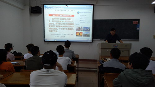 活动中,全体人员先认真观看了习近平总书记在北京大学师生座谈会和纪念马克思诞辰200周年大会讲话的相关视频。随后,高飞老师带领同学们回顾了十八大以来习近平总书记对青年学子的寄语,从“扣好人生第一粒扣子”到“青年强则国家强”,习近平总书记一次次对广大青年学子进行鼓励、鞭策和激励。