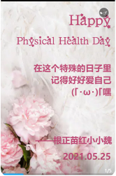 另外,我们院还独立举办了一些特色活动。比如心理委员提前制作好一些温馨、祝福的电子卡片,在健康日当天,通过微信或者QQ的方式,发送给班上每一位同学,很多同学收到电子卡片后表示既惊喜又感动。