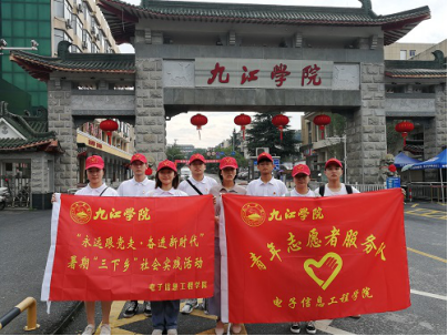 7月3日上午,williamhill中国“永远跟党走·奋进新时代”暑期“三下乡”社会实践服务队在学校南门口集中,在学院团委书记高飞老师带领下乘车赴都昌县周溪镇开展志愿服务活动。