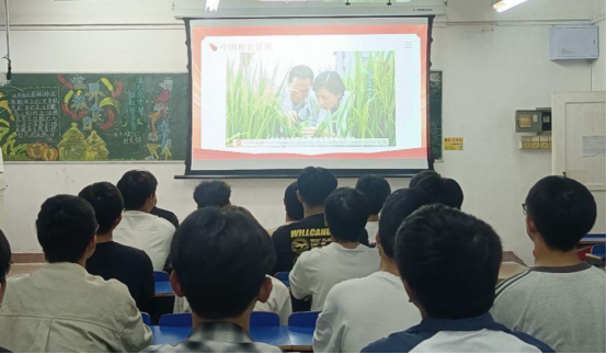 班会现场氛围浓厚,各班级结合学生认知特点设计丰富内容。各班团支部书记通过图文并茂的PPT,展示了全球粮食短缺的严峻现状与我国粮食生产的发展历程。从“一粒米需经历120天生长”的科学数据,到“农民伯伯弯腰收割”的辛劳场景,同学们在细节中深刻体悟“粒粒皆辛苦”的内涵。部分班级还组织观看了科普短片《一粒米的一生》,影片生动呈现了粮食从播种、耕耘、收获到加工、运输直至端上餐桌的全过程,让同学们对粮食的来之不易有了更直观、更深刻的认识。