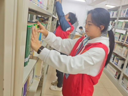 在图书借阅区内,志愿者们化身为“图书管理员助手”仔细核对图书的编号、架位是否错位,将错位、乱架的图书逐一放回原位,耐心剔除书籍表面的灰尘,让原本零散的图书重新排列得井然有序。此外,志愿者们还对图书架、桌椅等设施进行擦拭,捡拾杂物,为读者打造了干净舒适的阅读空间。